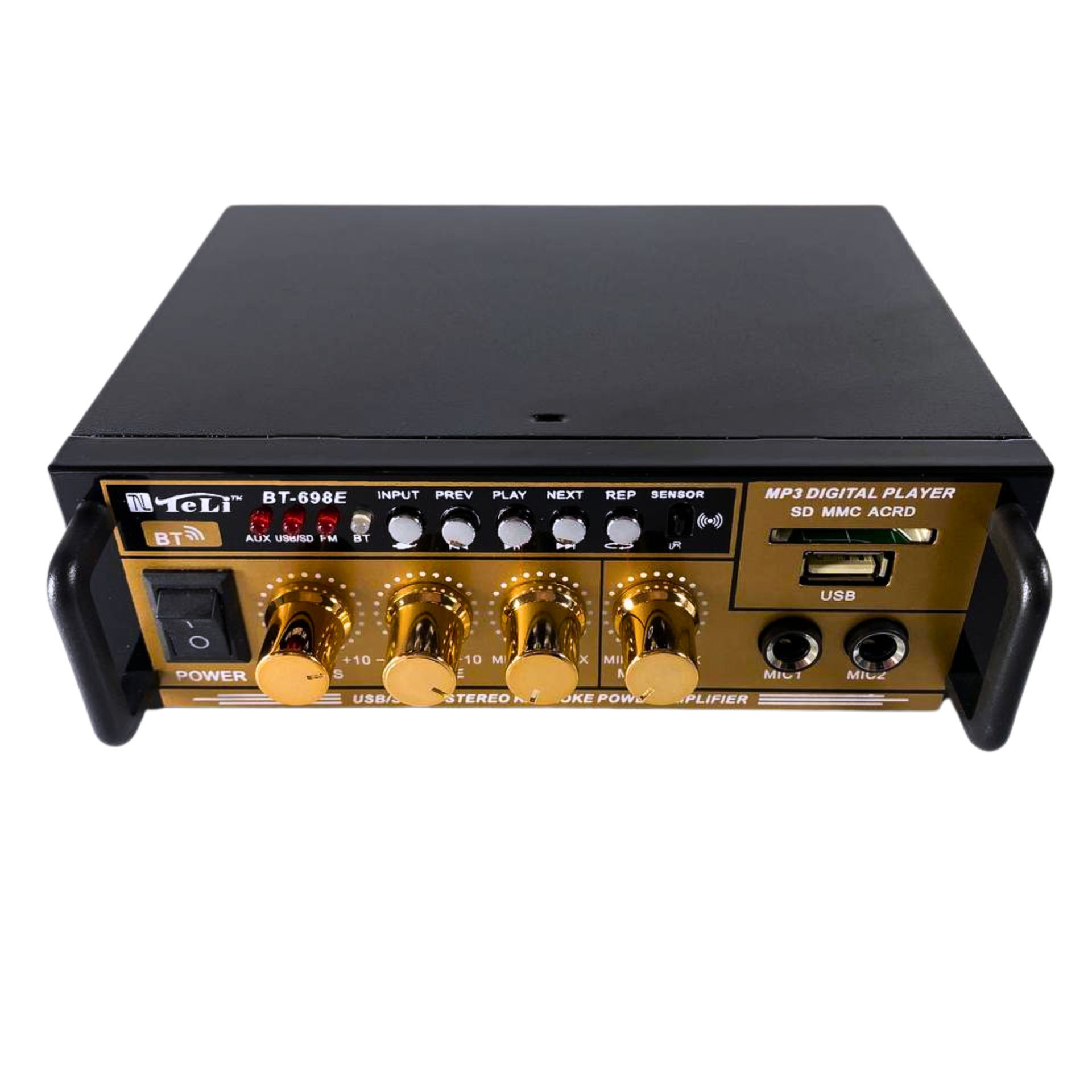Voltaje de entrada: CA 220V / DC12V (en automóvil)Bluetooth: soportePotencia RMS: 10 WImpedancia de carga: 4-16OSNR: -80 dbFrecuencia FM: 87.5-108MHzTasa de distoración: 0.05%Frecuencia: 10Hz-20 kHzSensibilidad: 0.25mV-220mVFuente de alimentación RC: batería CR2052 Tamaño: aprox. 16x13.5x5cm / 7.48x4.92x1.77 ''
